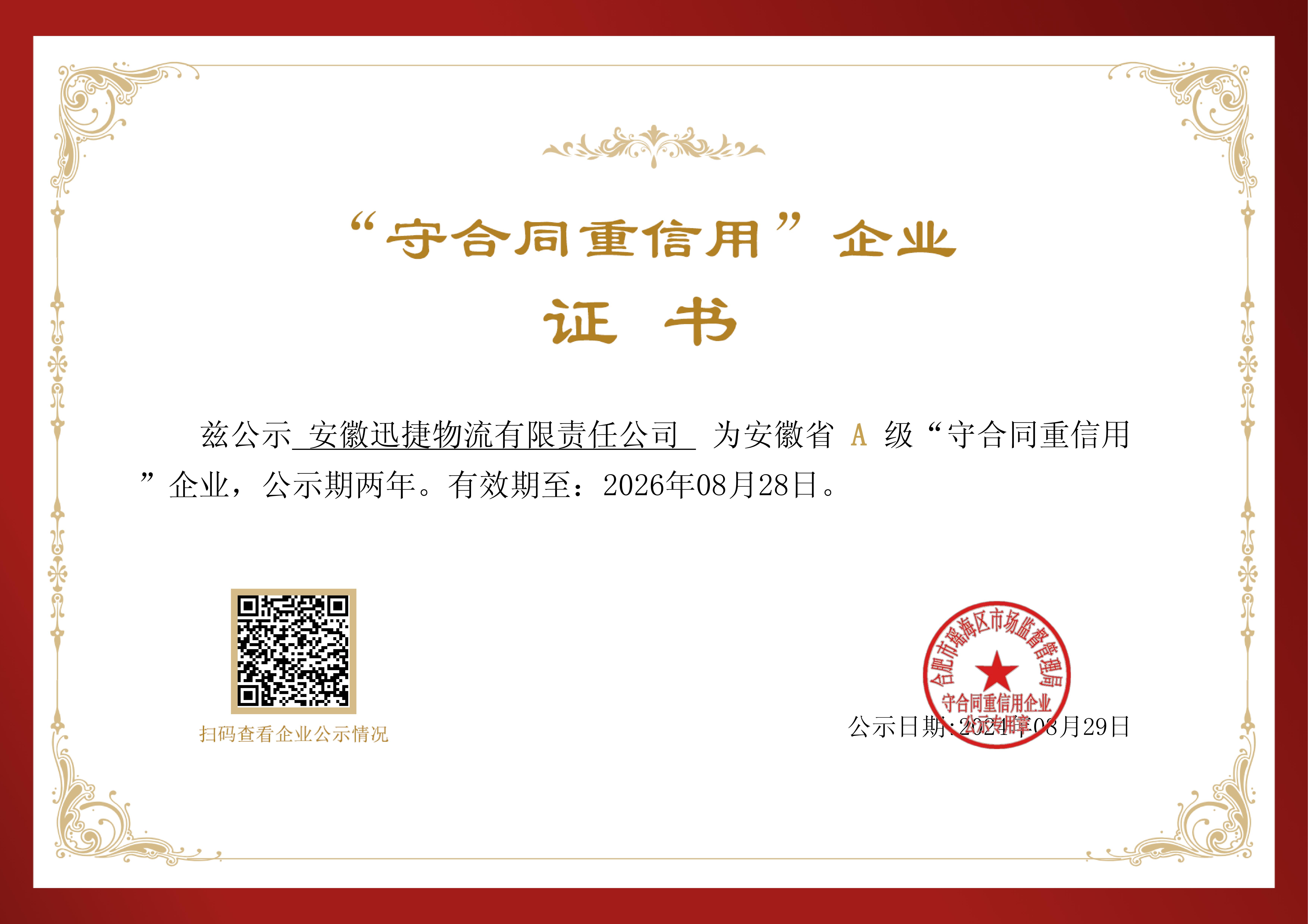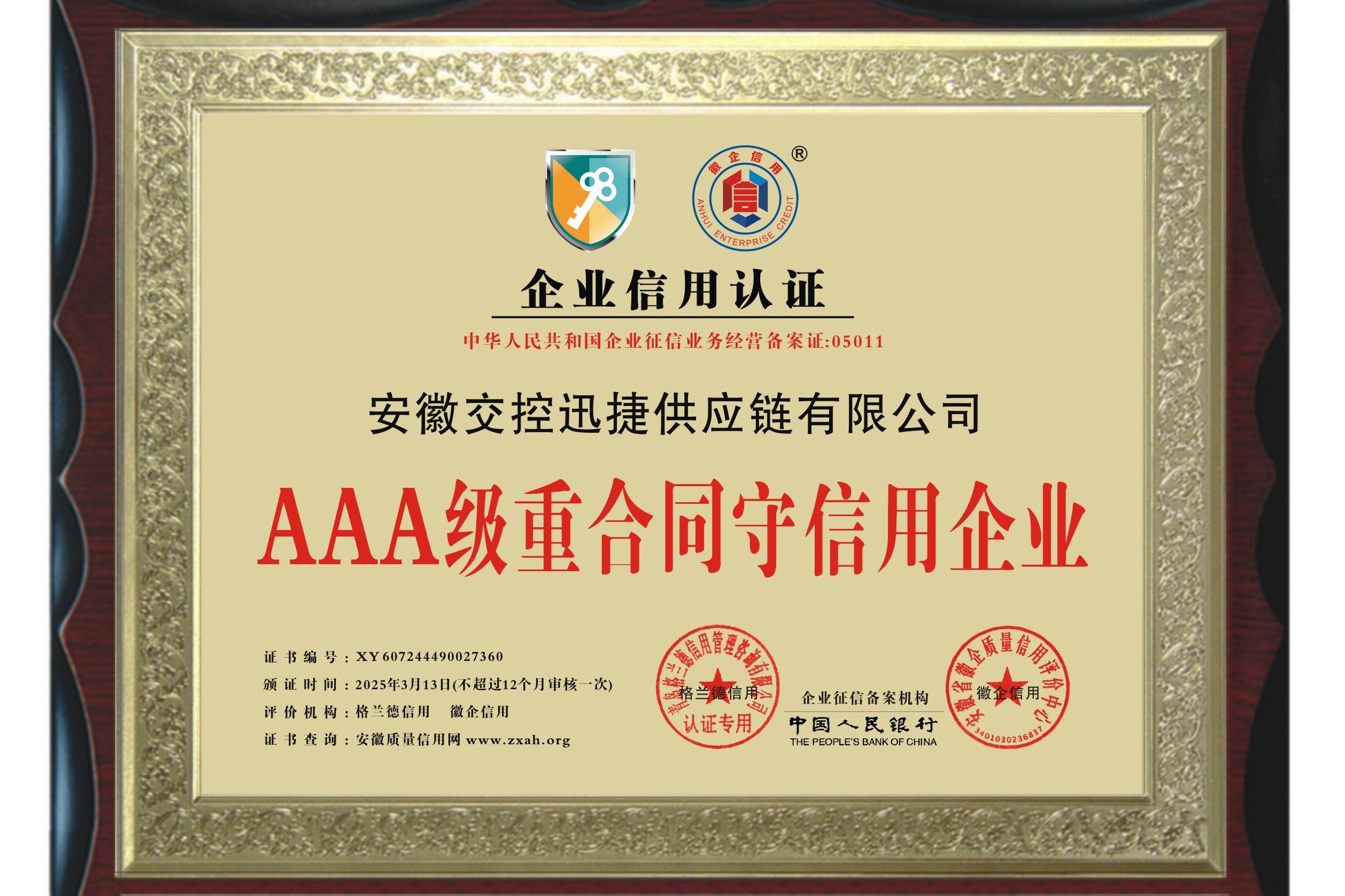 迅捷供應(yīng)鏈公司獲評(píng)“AAA級(jí)重合同守信用企業(yè)”